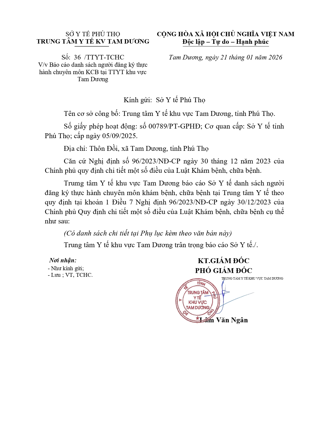 Báo cáo danh sách người thực hành đã hoàn thành quá trình thực hành khám bệnh, chữa bệnh 21/01/2026
