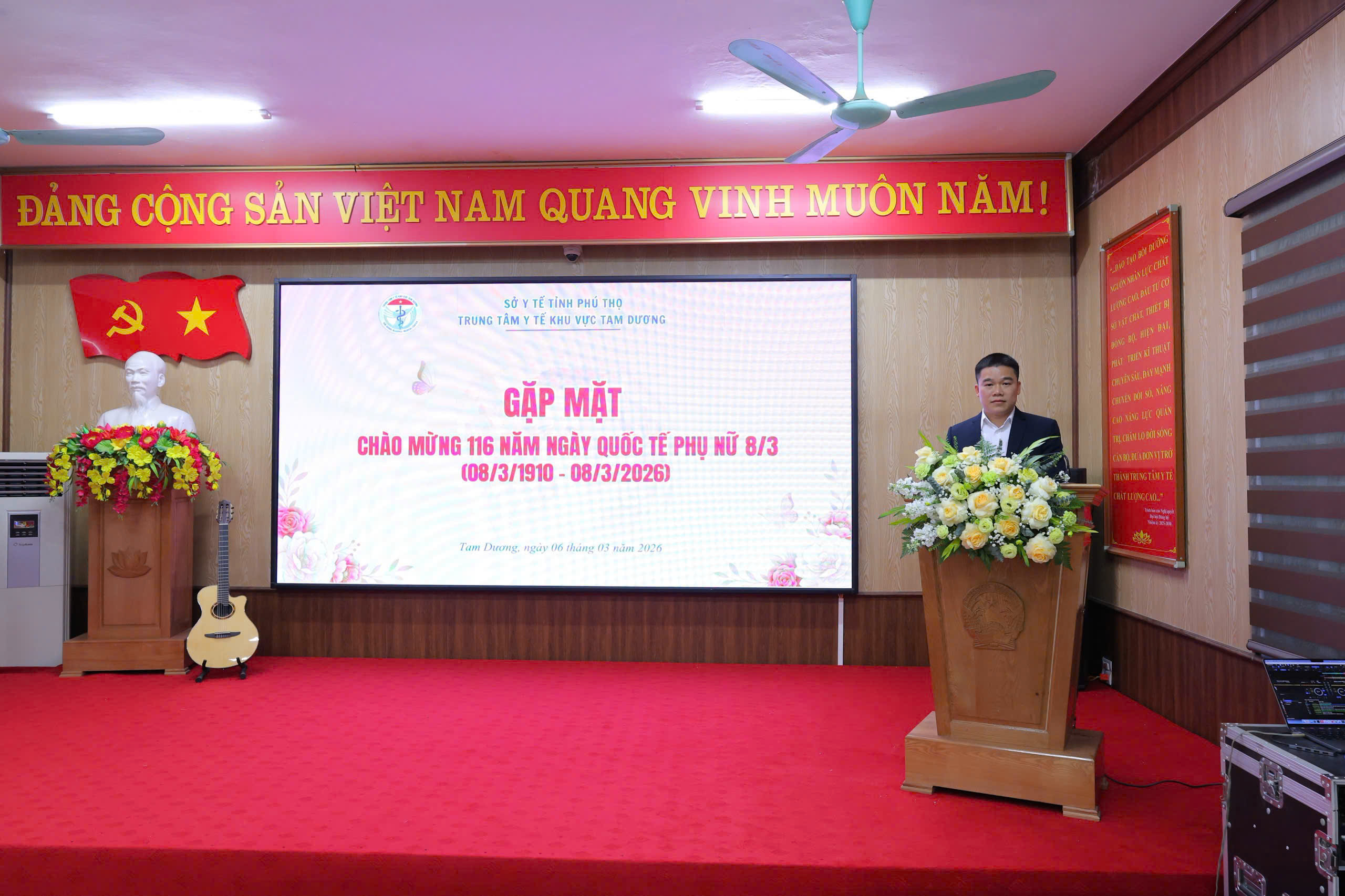 Chiều ngày 06/3/2026, trong không khí ấm áp của những ngày đầu tháng 3, Trung tâm Y tế khu vực Tam Dương đã tổ chức buổi gặp mặt thân mật chào mừng 116 năm Ngày Quốc tế Phụ nữ (8/3/1910 – 8/3/2026). Đây là dịp để tri ân, tôn vinh và gửi những lời chúc tốt đẹp tới đội ngũ nữ cán bộ, viên chức, người lao động của đơn vị – những người đang ngày đêm tận tụy cống hiến cho sự nghiệp chăm sóc và bảo vệ sức khỏe nhân dân.
